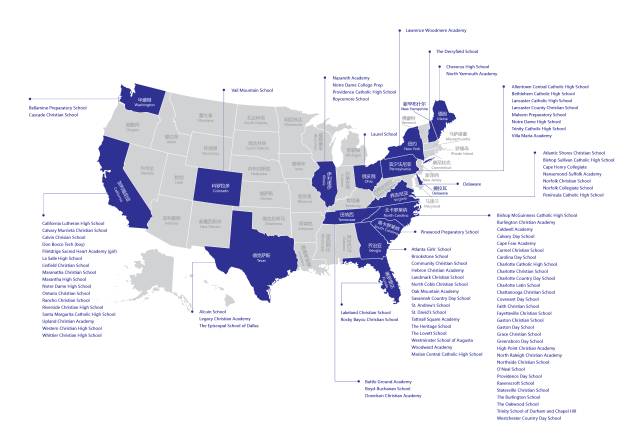 北京外国语大学联合美国十大优质公立学区,甄选学区内规模在千人以上的全美最佳高中金/银奖学校、蓝带学校,安全性高,规模庞大,国际生比例低,文化多元,而且大部分学校有超过20门的AP课程,利于中国学生的学业衔接和过渡。